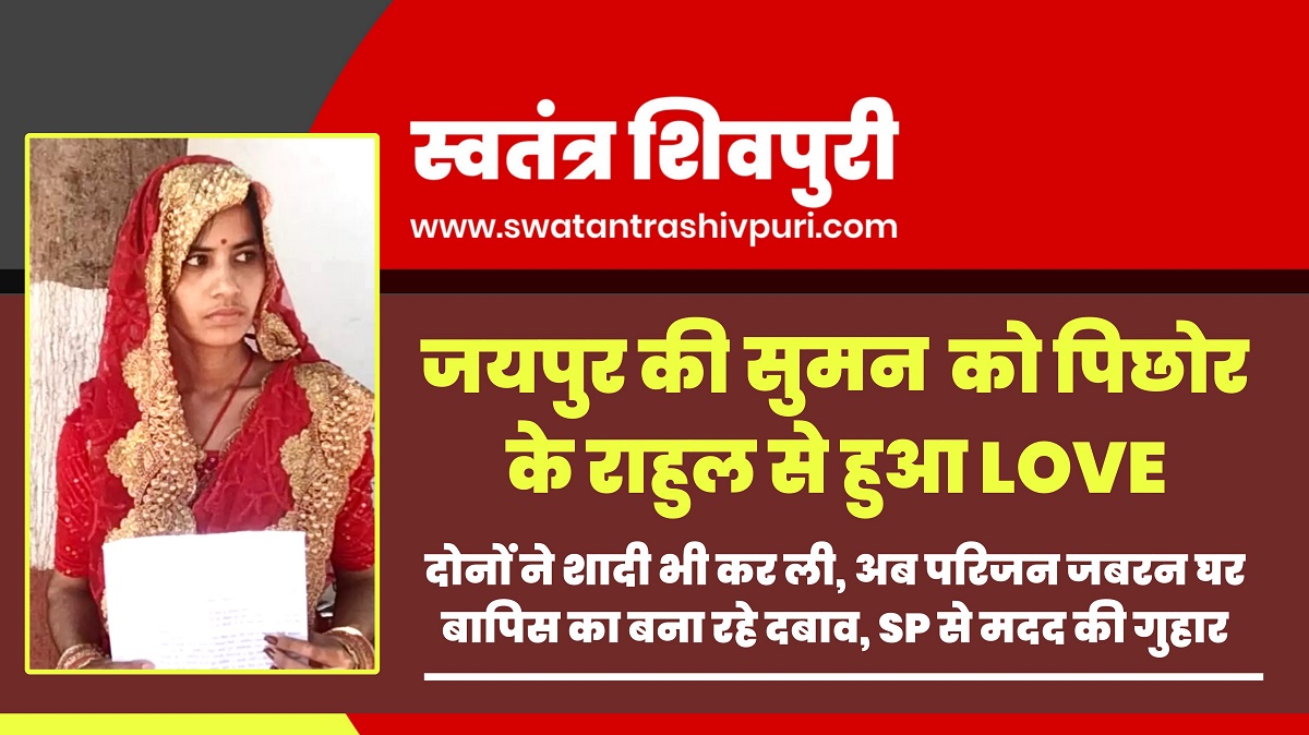 जयपुर की सुमन को पिछोर के राहुल से हुआ LOVE: दोनों ने शादी भी कर ली, अब परिजन घर वापिस का बना रहे दबाव, SP से मदद की गुहार