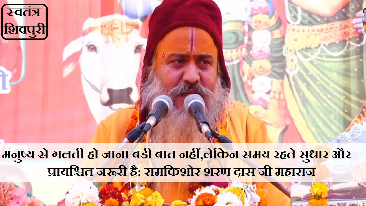 मनुष्य से गलती हो जाना बडी बात नहीं,लेकिन समय रहते सुधार और प्रायश्चित जरूरी है: रामकिशोर शरण दास जी महाराज