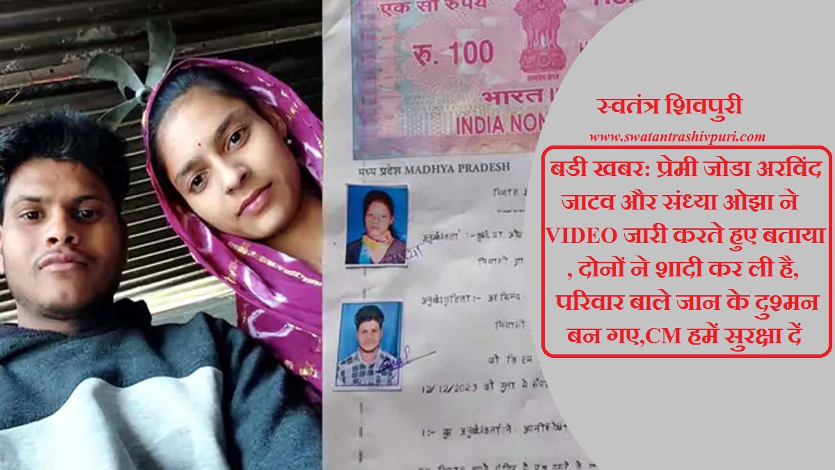 बडी खबर: प्रेमी जोडा अरविंद जाटव और संध्या ओझा ने VIDEO जारी करते हुए बताया, दोनों ने शादी कर ली है,परिवार बाले जान के दुश्मन बन गए,CM हमें सुरक्षा दें