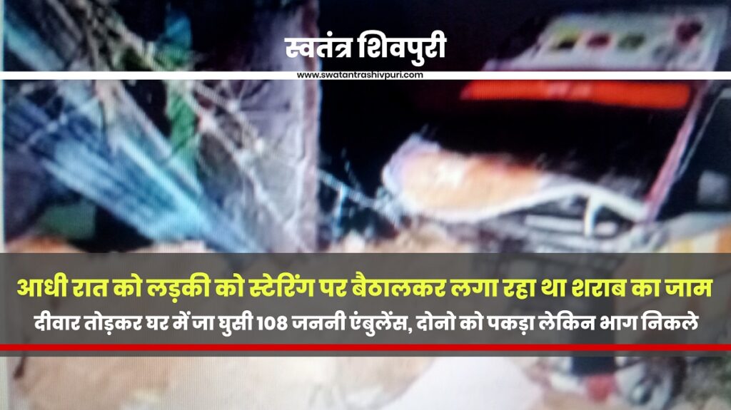 लड़की को स्टेरिंग पर बैठाकर लगा रहा था शराब का जाम: दीबार तोड़ घर में जा घुसी 108, लड़की और ड्राईवर एंबुलेंस छोड़कर रफूचक्कर