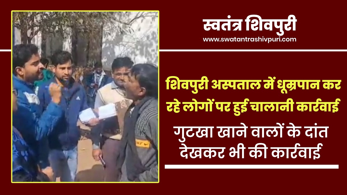 SHIVPURI अस्पताल में धूम्रपान कर रहे लोगों पर हुई चालानी कार्यवाही: गुटका खाने बालों के दांत देखकर भी कार्यवाही