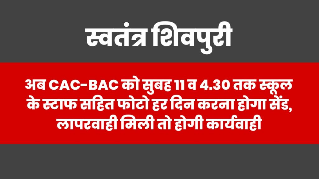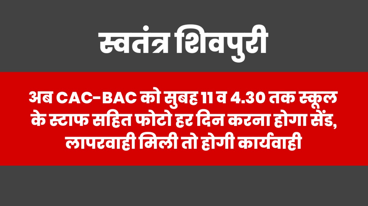 अब CAC-BAC को सुबह 11 व 4.30 तक स्कूल के स्टाफ सहित फोटो हर दिन करना होगा सेंड, लापरवाही मिली तो होगी कार्यवाही