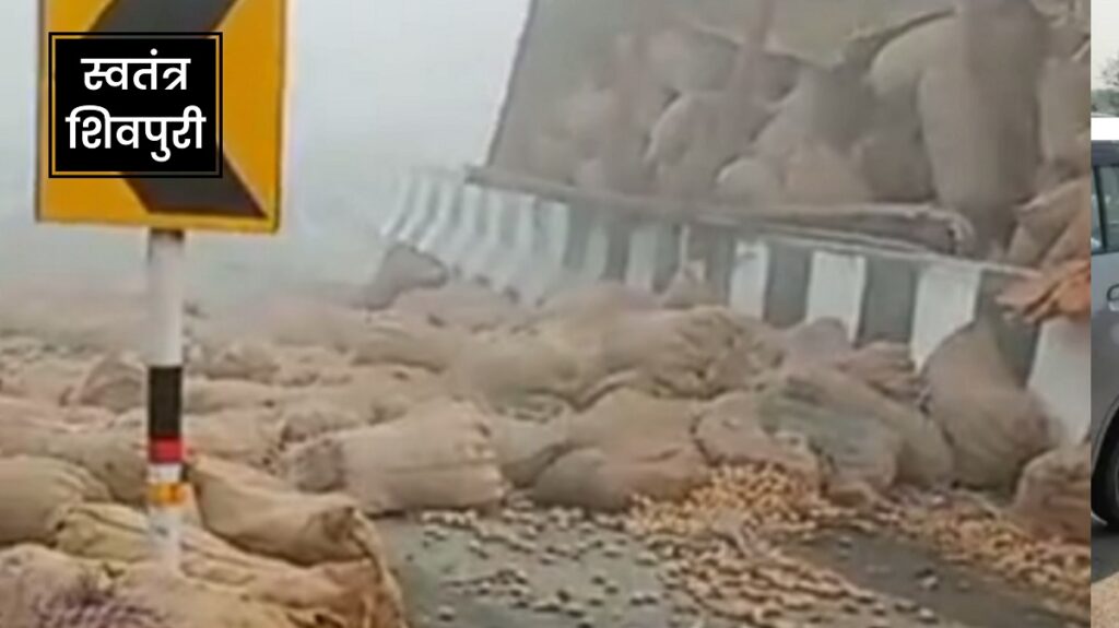 हाईवे पर पलटा आलूओं से भरा ट्रक: सड़क पर लगा आलूओं का अम्बार