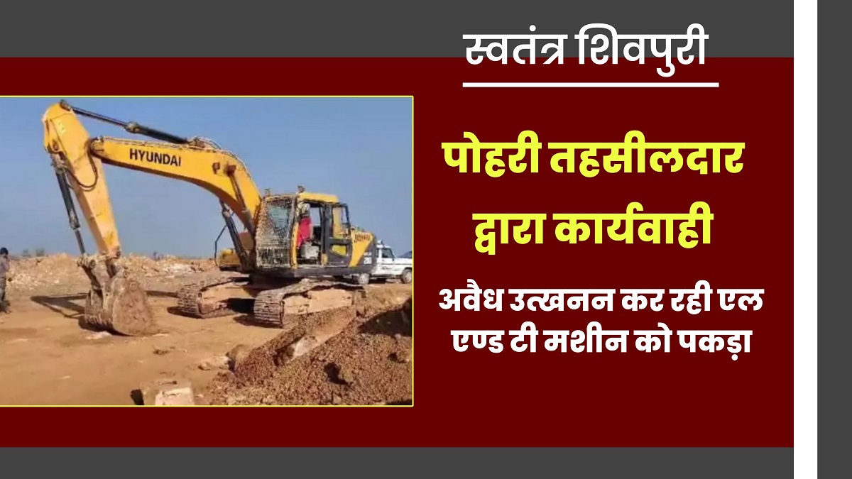 पोहरी तहसीलदार द्धारा कार्यवाही: अवैध उत्खनन कर रही एल एण्ड टी मशीन को पकड़ा