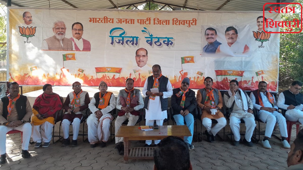शिवपुरी। आज भारतीय जनता पार्टी शिवपुरी जिला कार्य समिति की बैठक जिला अध्यक्ष राजू बाथम के अध्यक्षता में शुक्रवार को भाजपा कार्यालय पर आयोजित की गई। बैठक में पूर्व में किए गए सभी कार्यक्रमों की विशेष रूप से चर्चा की गई एवं आगामी कार्यक्रमों को सफल बनाने का दिशा निर्देश दिया गया। बैठक में संगठन को गांव-गांव तक मजबूत करने और आम लोगों को केंद्र व राज्य सरकार की कल्याणकारी योजनाओं की जानकारी देने को लेकर विशेष चर्चा की गई।