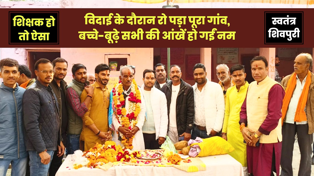 शिवपुरी। यह नजारा आप जो देख रहे है यह किसी नेता का कोई कार्यक्रम नही है और न ही यह कोई राजनेता है। बल्कि यह नजारा है एक शिक्षक की विदाई का। जहां एक शिक्षक को विदा करते समय पूरा गांव उमड पडा और पूरा गांव इस शिक्षक की विदाई करते समय रो पडा।