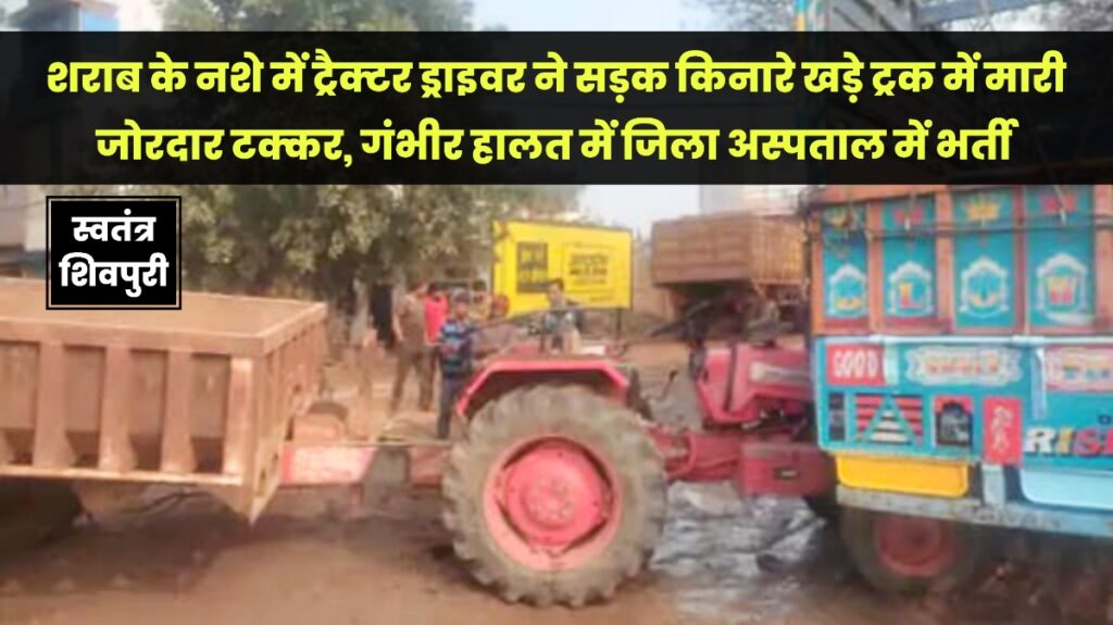 शराब के नशे में ट्रैक्टर ड्राइवर ने सड़क किनारे खड़े ट्रक में मारी जोरदार टक्कर, गंभीर हालत में जिला अस्पताल में भर्ती
