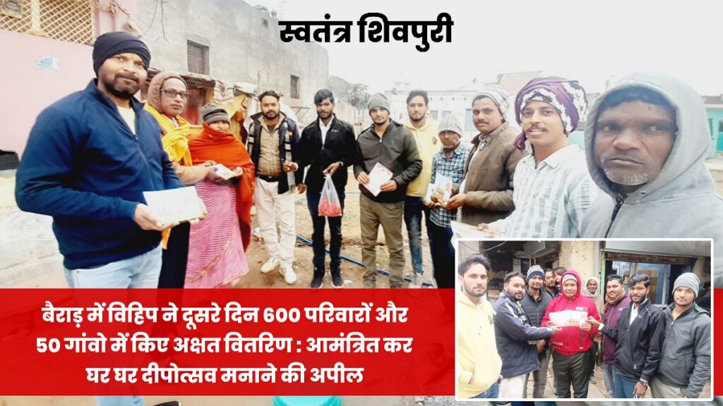 बैराड़ में VHP ने दूसरे दिन 600 परिवारों और 50 ग्रामों में अक्षत वितरण कर दिया आमंत्रण: घर-घर दीपावली मनाने की अपील