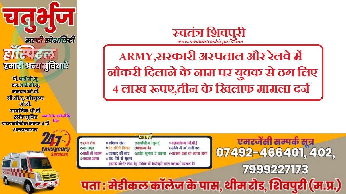 ARMY,सरकारी अस्पताल और रेलवे में नौकरी दिलाने के नाम पर युवक से ठग लिए 4 लाख रूपए,तीन के खिलाफ मामला दर्ज