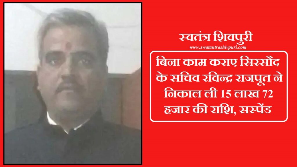 SHIVPURI NEWS- बिना काम कराए सिरसौद के सचिव रविन्द्र राजपूत ने निकाल ली 15 लाख 72 हजार की राशि, सस्पेंड