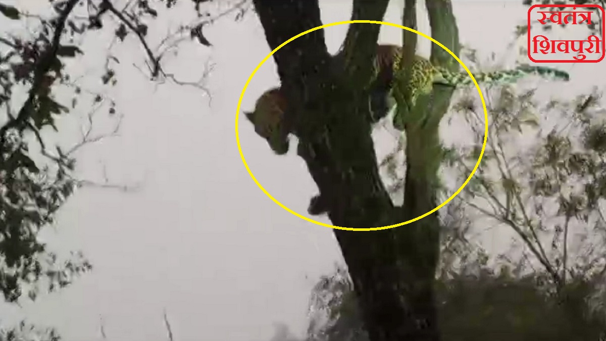 शिकार की तलाश में पेड पर चढ गया तेदुआ,कैमरे में कैद, जमकर हो रहा है वायरल