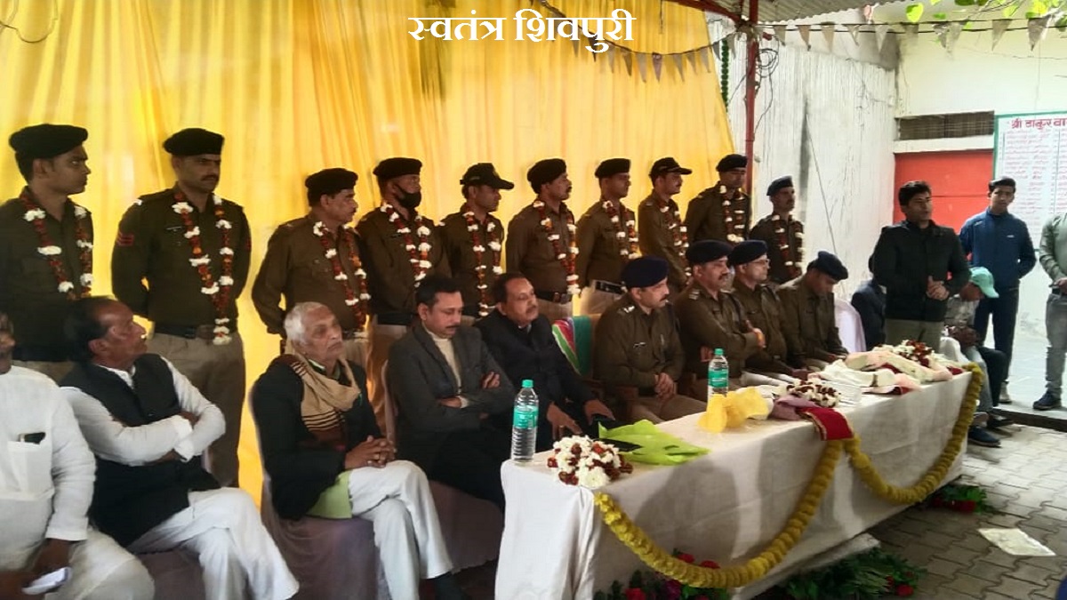 जिसमें मुख्य रूप से पुलिस अधीक्षक शिवपुरी रघुवंश सिह भदौरिया, एसडीओपी पोहरी सुजीत सिह भदौरिया सहित बैराड थाना प्रभारी नवीन यादव एवं एअइ सीबहरे सहित पुलिस स्टाफ पहुचे। जहा सभी समाजो द्वारा पुलिस अधीक्षक,एसडीओपी एव अन्य पुलिस स्टाफ का शॉल-श्रीफल भेंट कर सम्मान किया।