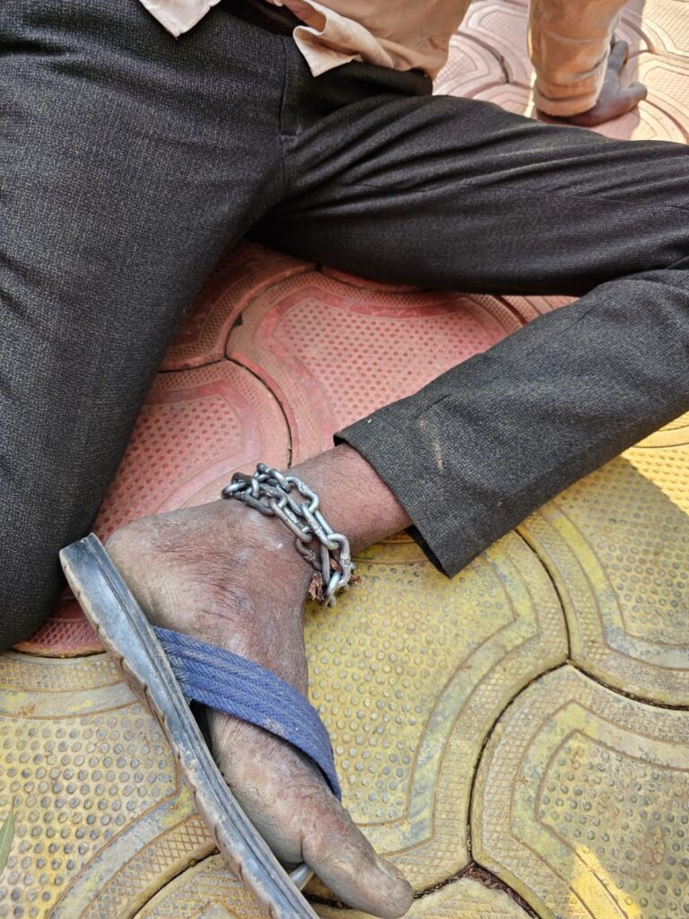 पैर में लोहे की जंजीर बंधी थी मजदूर के