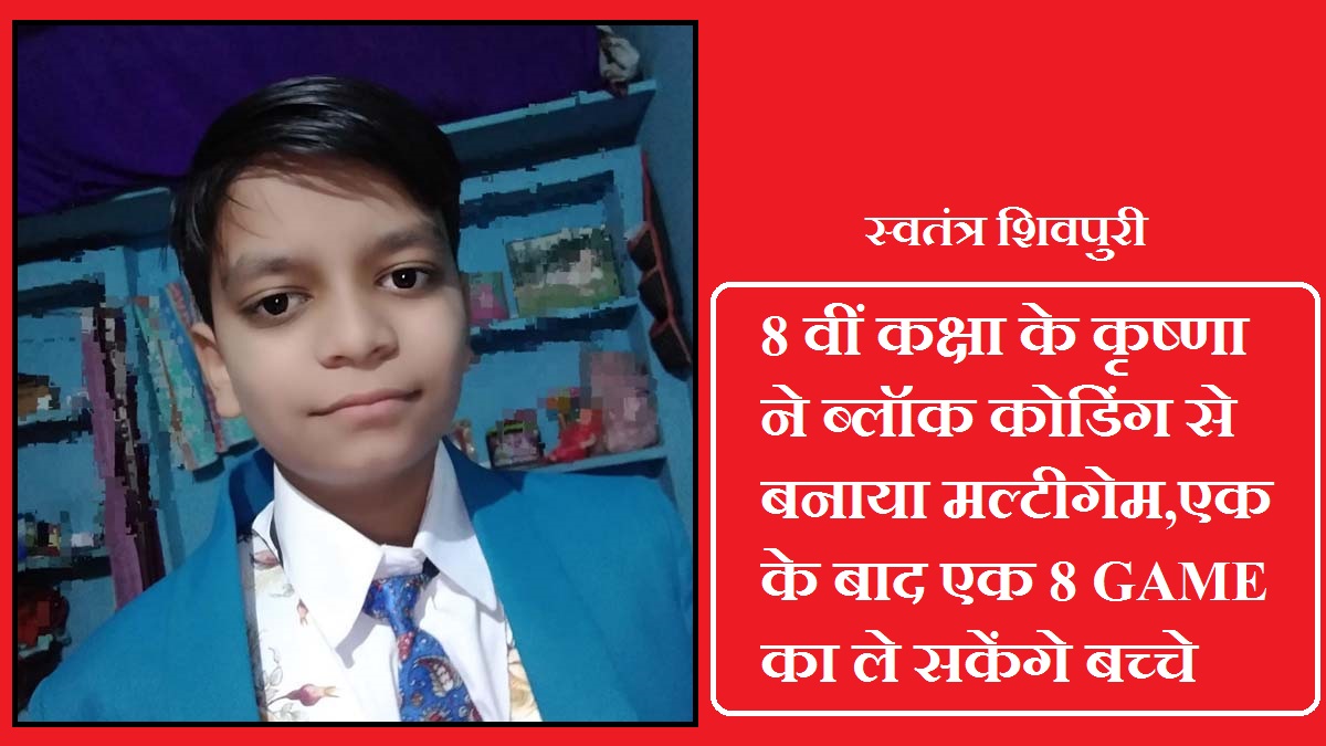 8 वीं कक्षा के कृष्णा ने ब्लॉक कोडिंग से बनाया मल्टीगेम,एक के बाद एक 8 GAME का ले सकेंगे बच्चे