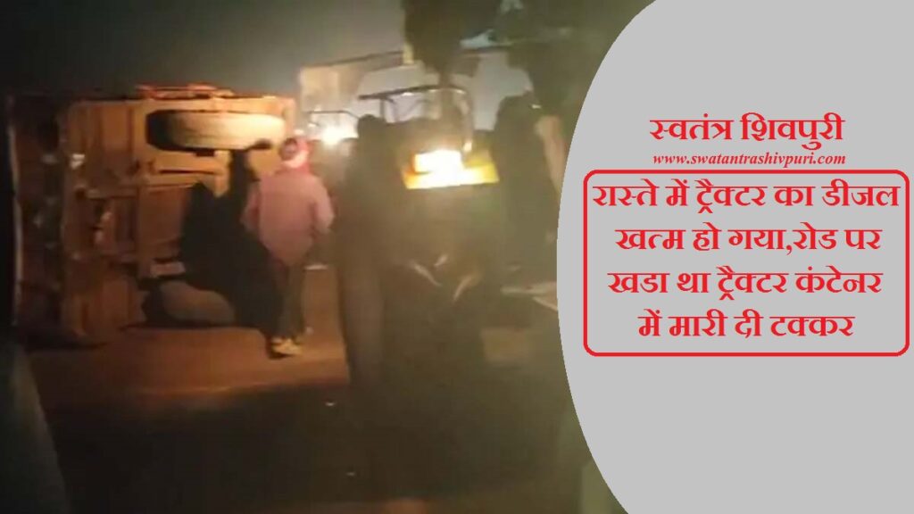 रास्ते में ट्रैक्टर का डीजल खत्म हो गया,रोड पर खडा था ट्रैक्टर कंटेनर में मारी दी टक्कर
