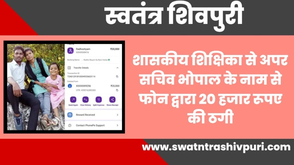 शासकीय शिक्षिका से अपर सचिव भोपाल के नाम से फोन द्वारा 20 हजार रूपए की ठगी