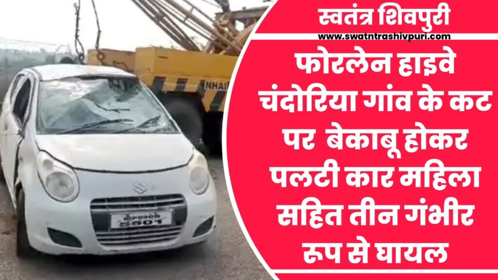 फोरलेन हाइवे चंदोरिया गांव के कट पर बेकाबू होकर पलटी कार महिला सहित तीन गंभीर रूप से घायल