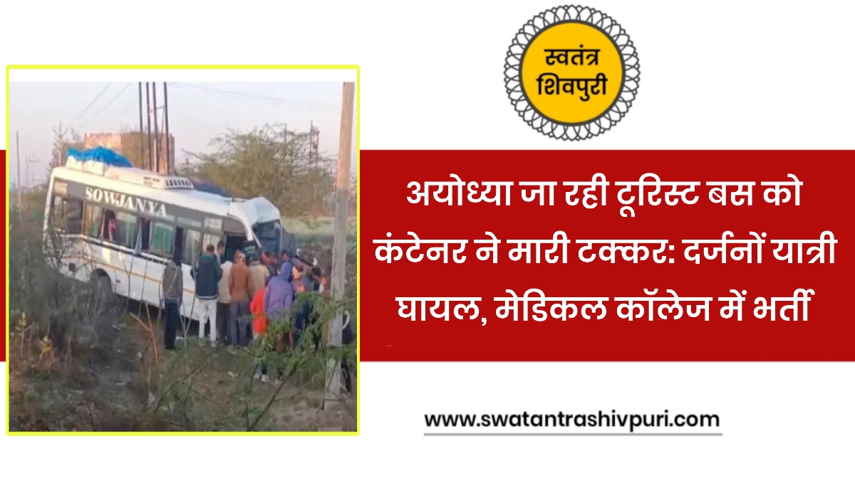 अयोध्या जा रही टूरिस्ट बस को कंटेनर ने मारी टक्कर : दर्जनों यात्री घायल, मेडिकल कॉलेज में भर्ती