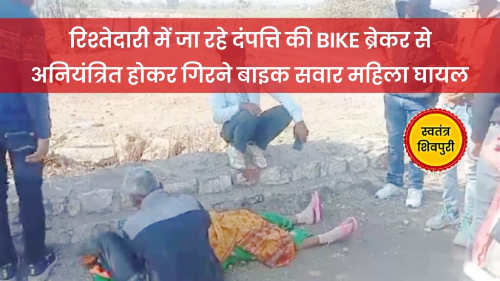 रिश्तेदारी में जा रहे दंपत्ति की BIKE ब्रेकर से अनियंत्रित होकर गिरने बाइक सवार महिला घायल