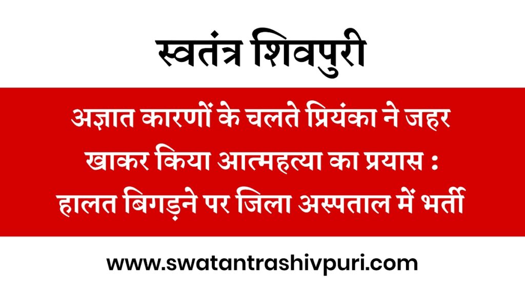 अज्ञात कारणों के चलते प्रियंका ने जहर खाकर किया आत्महत्या का प्रयास : हालत बिगड़ने पर जिला अस्पताल में भर्ती