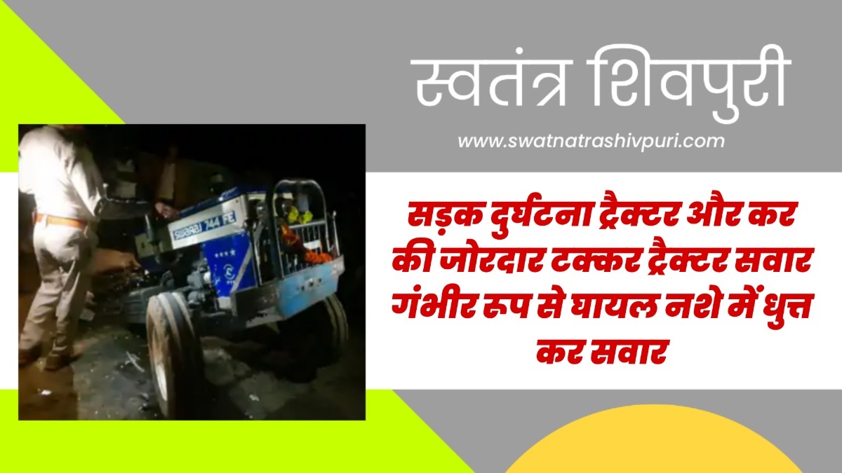 सड़क दुर्घटना ट्रैक्टर और कार की जोरदार टक्कर ट्रैक्टर सवार गंभीर रूप से घायल नशे में धुत्त कार सवार