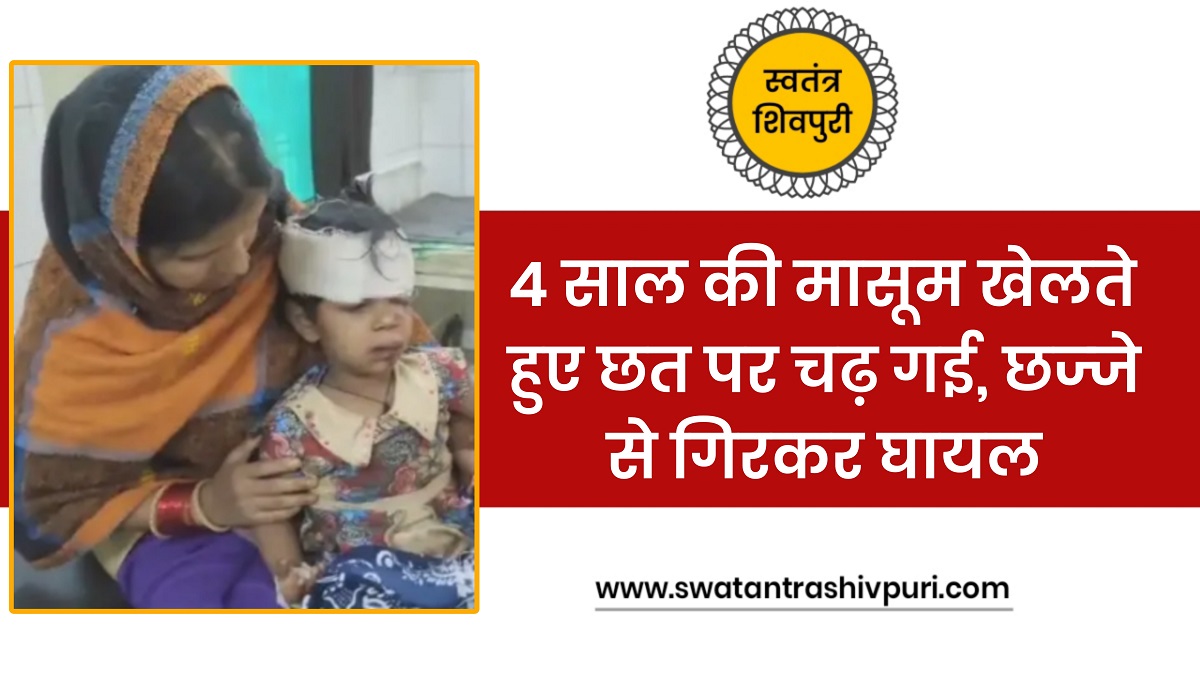 शिवपुरी। खबर जिले के फिजिकल थाना क्षेत्र से आ रही है। जहां कमलागंज घोसीपुरा में रहने वाली एक चार साल की मासूम अपने मकान के छज्जे पर खेलते खेलते नीचे गिर गई। इसके बाद परिजनों ने उसे जिला अस्पताल में भर्ती कराया है। जहां पर उसका उपचार जारी है।