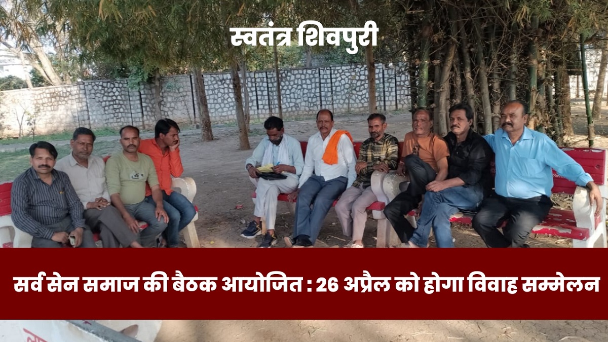 शिवपुरी। सर्वसेन समाज द्वारा बुधवार को सामूहिक विवाह सम्मेलन की तैयारियों को लेकर दर्रोनी तिराहा आस्था गार्डन में एक बैठक का आयोजन किया गया। बैठक में आगामी 26 अप्रैल 2024 को आयोजित होने वाले सर्व सेन समाज के सामूहिक विवाह सम्मेलन को लेकर चर्चा की गई।