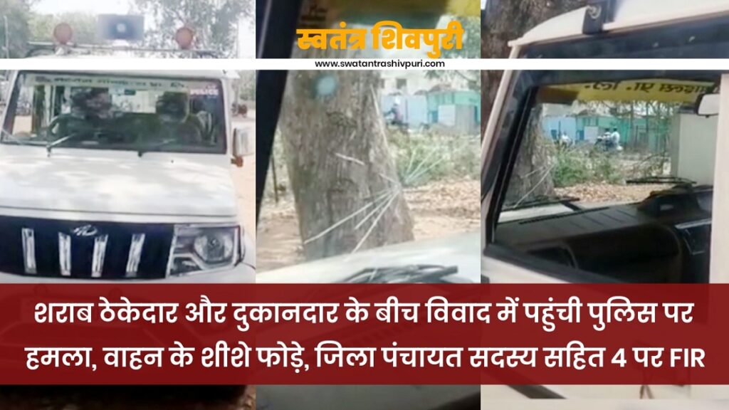शराब ठेकेदार और दुकानदार के बीच विवाद में पहुंची पुलिस से भी झड़प,POLICE वाहन के फोड़े शीशे,जिला पंचायत सदस्य सहित 4 पर FIR
