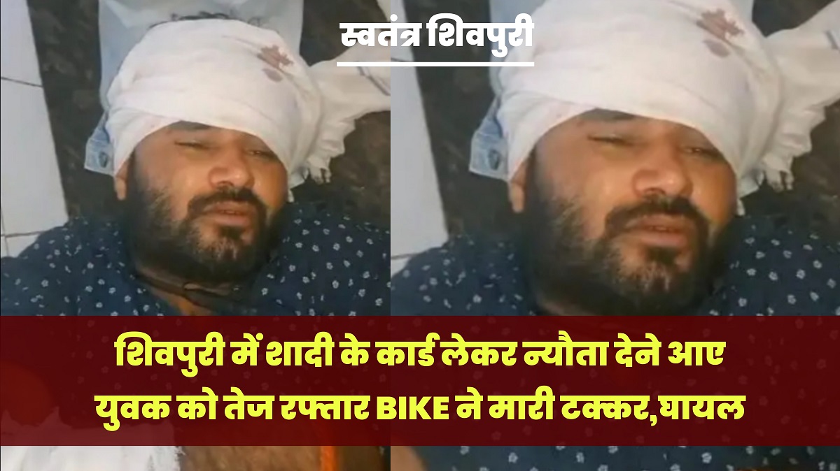 SHIVPURI में शादी के कार्ड लेकर न्यौता देने आए युवक को तेज रफ्तार BIKE ने मारी टक्कर,घायल