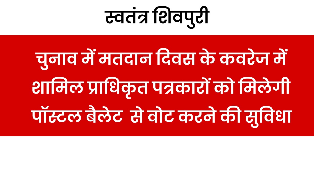 शिवपुरी। भारत निर्वाचन आयोग द्वारा अब मतदान दिवस के कवरेज में शामिल प्राधिकृत पत्रकारों को भी पोस्टल बैलेट से वोट डालने की सुविधा प्रदान की गई है। आयोग ने अधिसूचना जारी कर पत्रकारों के कार्य को अत्यावश्यक सेवा श्रेणी में स्थान देकर यह सुविधा प्रदान की है।