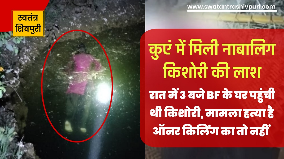 शिवपुरी। खबर जिले के खनियांधाना थाना क्षेत्र से आ रही है। जहां बीते रोज कुएं में मिली एक नाबालिग किशोरी की लाश के मामले में कल तक प्रथम दृश्यता यह मामला सुसाईड का लग रहा था। परंतु जब लाश को कुएं से निकालकर पुलिस ने मामले की जांच की तो सामने आया कि उक्त किशोरी के होट, नाक, कान कटे हुए मिले है। इस मामले में पुलिस ने जब मामले की जांच की तो सामने आया कि उक्त किशोरी रात्रि को 3 बजे अपने बीएफ के घर भी पहुंची थी। बीएफ ने भी यह बात स्वीकार की है। जिसके चलते अब यह मामला और उलझ गया। पुलिस अब इस मामले में जांच कर रही है कि कही किशोरी की हत्या उसके बीएफ या परिवार बालों तो नहीं की या फिर किशोरी के परिजनों ने ही ऑनर किलिंग तो नहीं की।