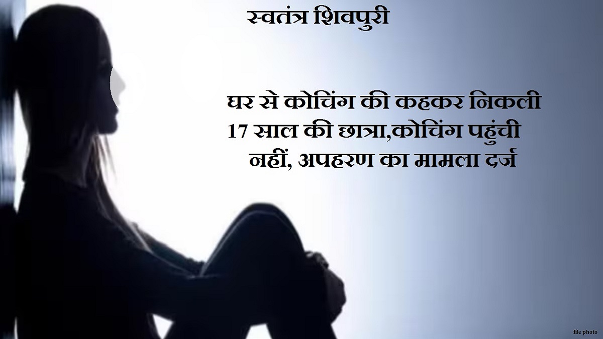 शिवपुरी। खबर जिले के पिछोर थाना क्षेत्र से आ रही है। जहां अपने घर से कोचिंग की कहकर निकली एक 17 साल की किशोरी संदिग्ध परिस्थति में गायब हो गई। जब किशोरी देर शाम तक नहीं लौटी तो परिजनों ने किशोरी तलाश करने कोचिंग पर पहुंचे। जहां पता चला कि किशोरी कोचिंग पहुंची ही नहीं। जिसके चलते परिजनों ने इस मामले की शिकायत पिछोर थाने में की। जहां पुलिस ने किशोरी के परिजनों की शिकायत पर किशोरी के नाबालिग होने के चलते अपहरण की धाराओं में मामला दर्ज कर विवेचना में ले लिया है।