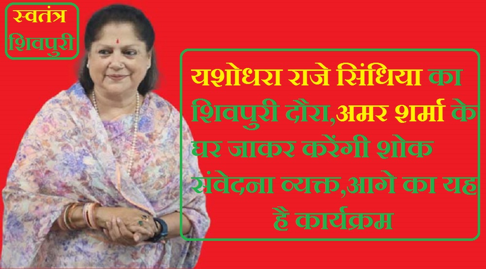 यशोधरा राजे सिंधिया का शिवपुरी दौरा,अमर शर्मा के घर जाकर करेंगी शोक संवेदना व्यक्त, आगे का यह है कार्यक्रम