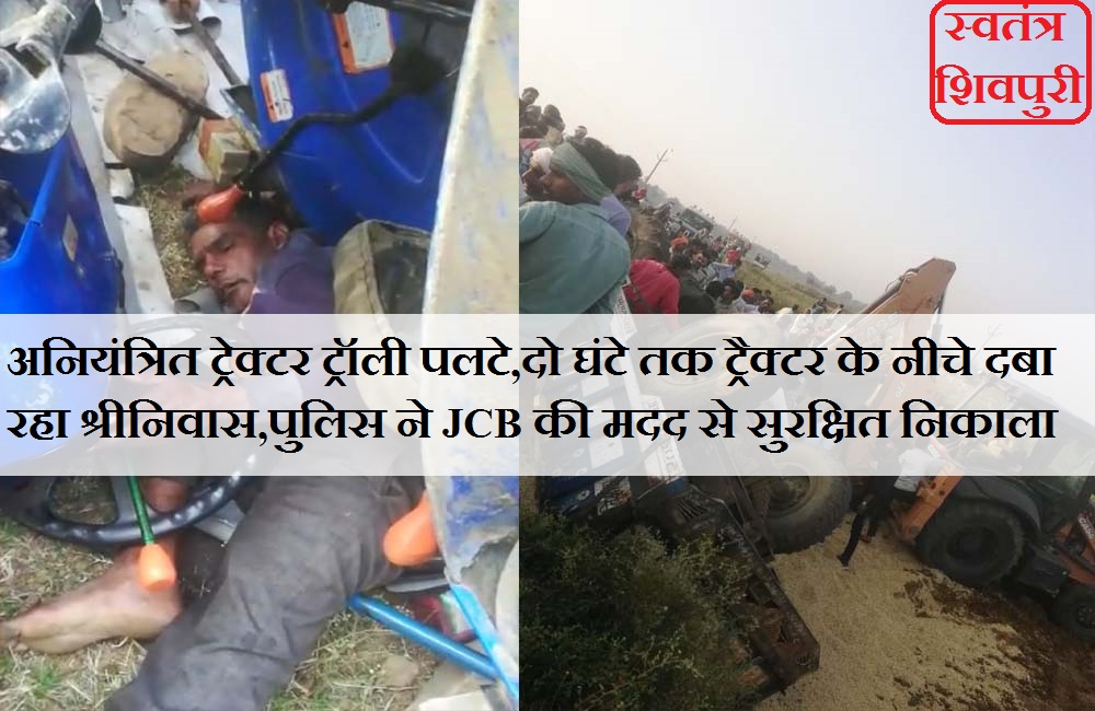 अनियंत्रित ट्रेक्टर ट्रॉली पलटे, दो घंटे तक ट्रैक्टर के नीचे दबा रहा श्रीनिवास, पुलिस ने JCB की मदद से सुरक्षित निकाला