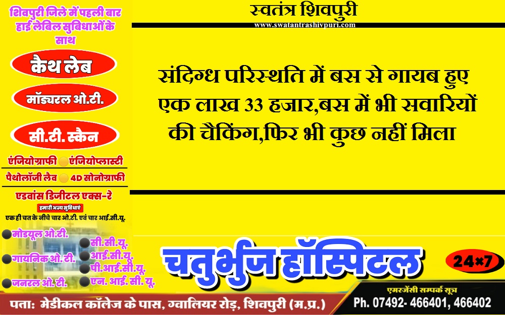 जानकारी के अनुसार करैरा में नौकरी करने वाले मोहित पुत्र महेश नामदेव रोजाना की तरह शुक्रवार को अपनी ड्यूटी पर करैरा जा रहे थे। इसी क्रम में मोहित के दोस्त दीपक अग्रवाल ने उसे एक लाख 33 हजार रुपये करैरा के किसी व्यापारी को देने के लिए दिए। महेश ने उक्त पैसे अपने बैग में रख लिए और बस में सवार होकर करैरा के लिए रवाना हो गए।