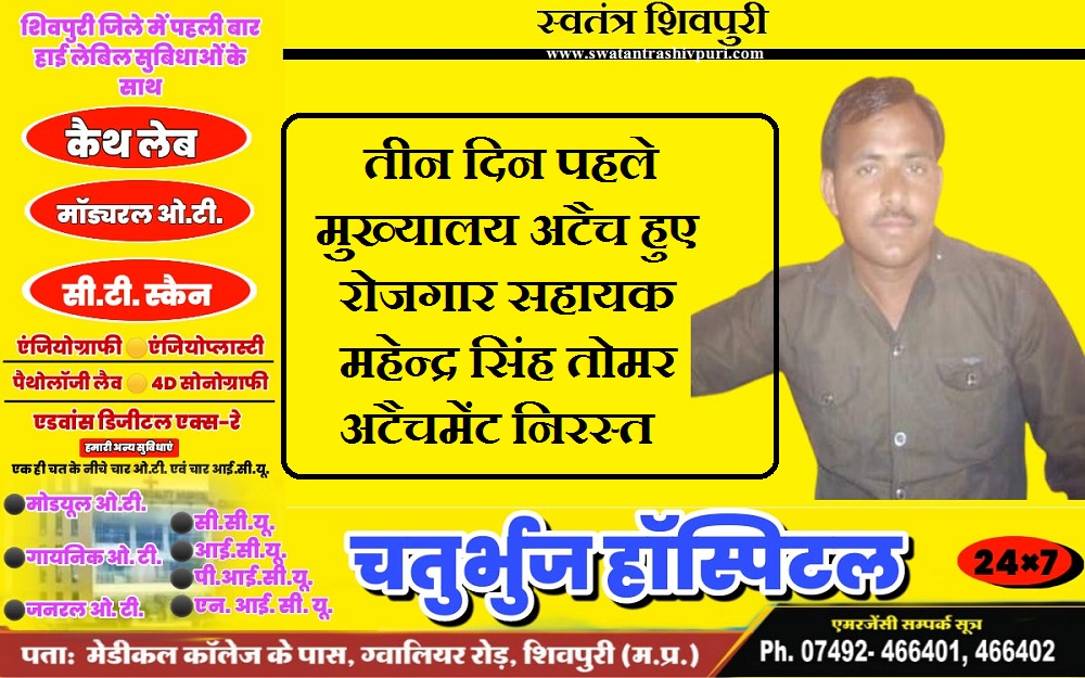 तीन दिन पहले मुख्यालय अटैच हुए रोजगार सहायक महेन्द्र सिंह तोमर अटैचमेंट निरस्त