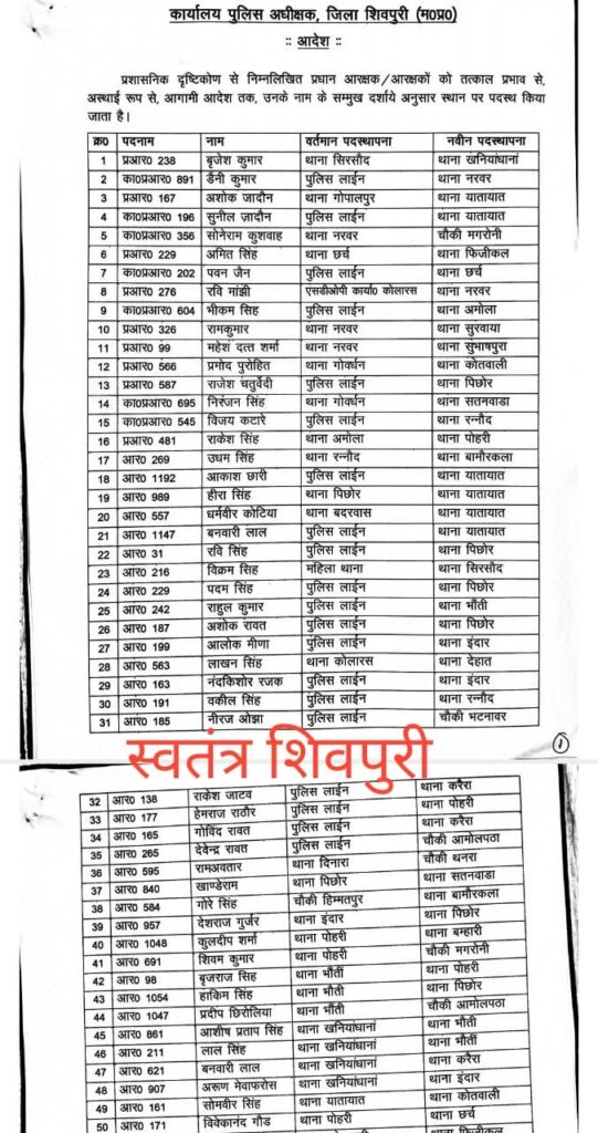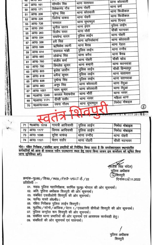 यह प्रधान आरक्षक और आरक्षकों का हुआ तवादला