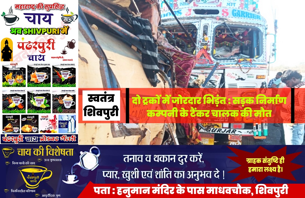 दो ट्रको में जोरदार भिडंत: सडक निर्माण कंपनी के टैंकर चालक के मौत