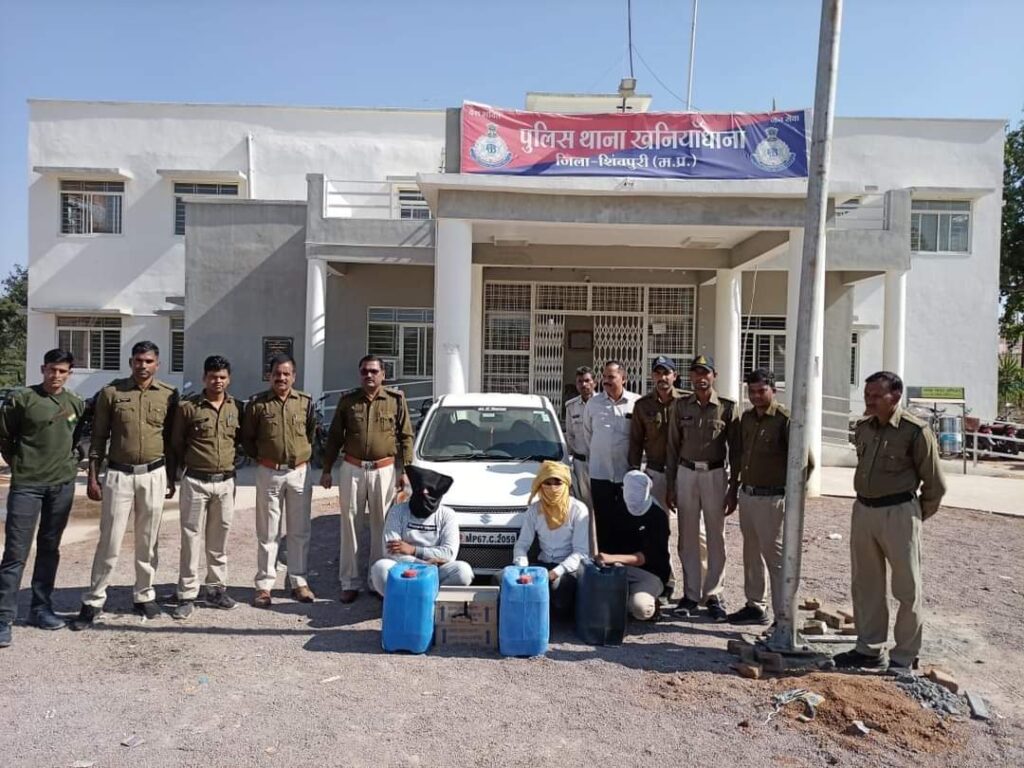 खनियाधाना थाना प्रभारी की कार्यवाही 90 लीटर हाथ भट्टी की बनी कच्ची शराब व 02 पेटी देशी प्लेन मदिरा और ऑल्टो कार की जप्त 3 आरोपियो को भेजा जेल