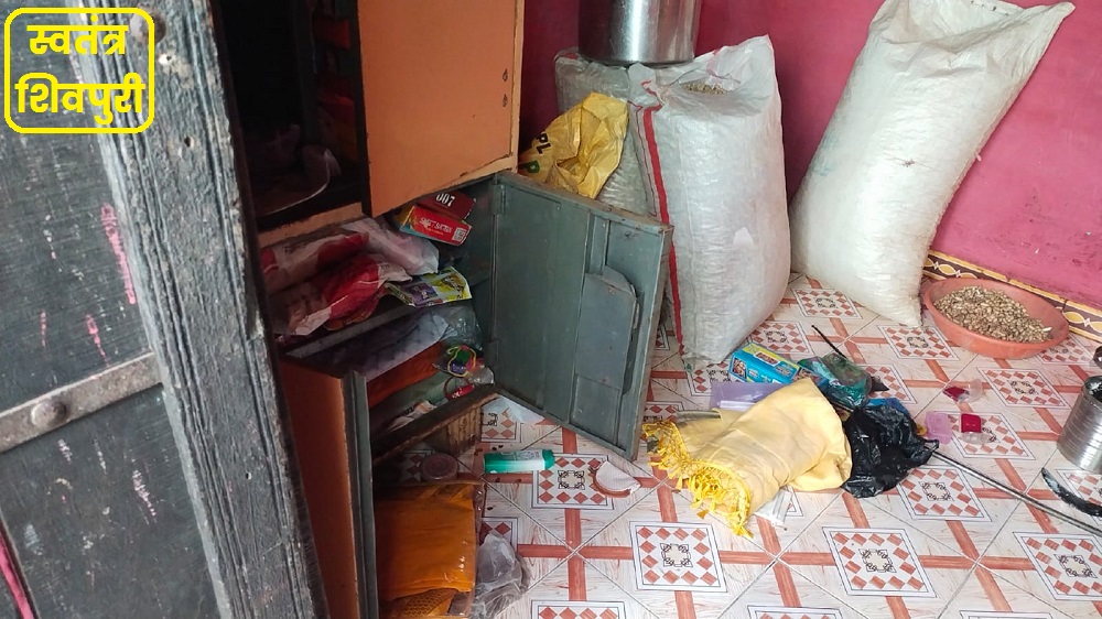 रामलखन धाकड़ ने बताया उसके पड़ोसी नारायण सिंह धाकड़ ने घर मे हुई चोरी की सूचना फोन पर दी थी। दअरसल वह बीते रोज अपनी पत्नी भगवती धाकड़ के साथ शिवपुरी एक रिश्तेदार के यहां आया हुआ था घर पर उसकी दो बेटियां थी। चोरों ने द्वारा घर के कमरे में लगे ताले तो तोड़ कर प्रवेश किया। कमरे में रखे बक्से का ताला टूटा पड़ा हुआ था बक्से में रखी चांदी करथोनी, एक जोड़ी चांदी की पायल, एक जोड़ी चांदी की तोड़िया, तीन पेंडल वाला सोने का मंगलसूत्र, एक सिंगल पेंडल का मंगलसूत्र एवं आठ हजार रुपए नगदी सहित घर मे रखा देशी घी से भरा चोरी कर लिया। रामलखन ने चोरी हुए सामन की नित लागत तीन लाख रुपए बताई है।