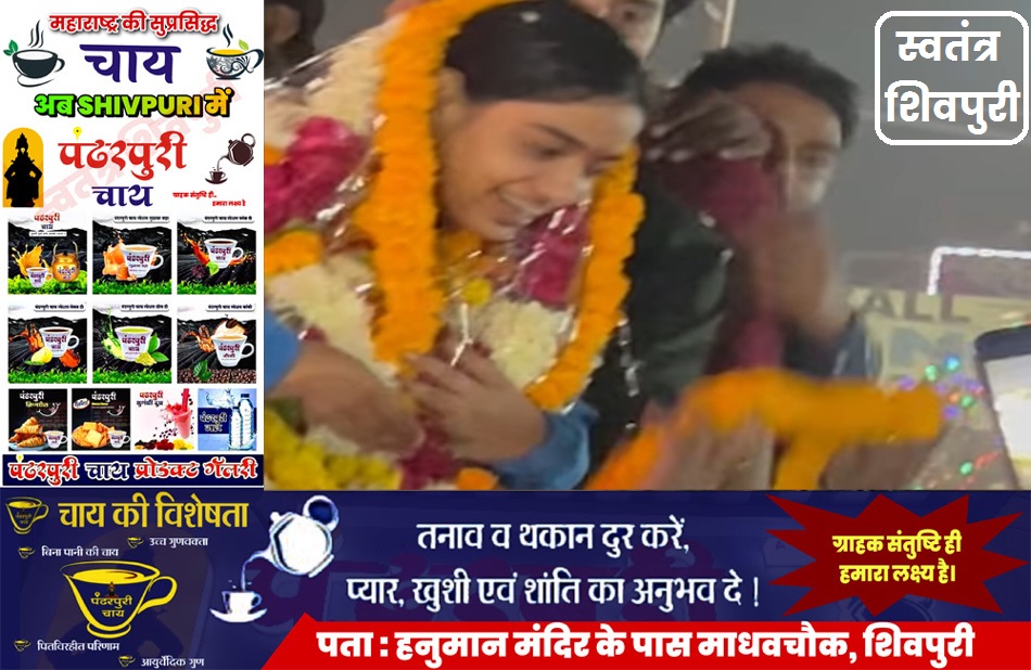 शिवपुरी पहुंची विश्व विजेता मुस्कान खान: शहर ने पलक पावडे बिछाकर बेटी का किया भव्य स्वागत, कई जगह लड्डूओ से तोला