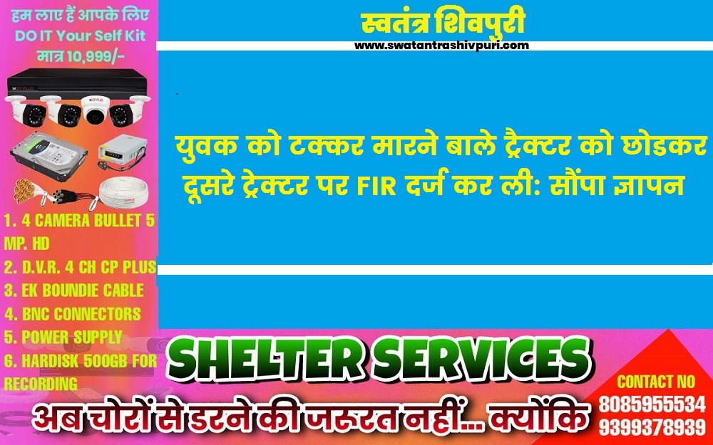 घटना का सीटीवी फुटेज एवं साक्षी हरगोविंद कुशवाह, नीरज कुशवाह ने घटना देखी है। नरवर पुलिस ने सांठगांठ कर इस ट्रैक्टर एवं ट्रैक्टर चालक के केस दर्ज न करते हुए एक निर्दोष युवक के खिलाफ केस दर्ज किया गया है। इसकी निष्पक्ष जांच सात दिवस में कर संबंधित ट्रैक्टर चालक के खिलाफ केस दर्ज किया जाए। अन्यथा कुशवाह समाज जन आंदोलन के लिए मजबूर होगा।
