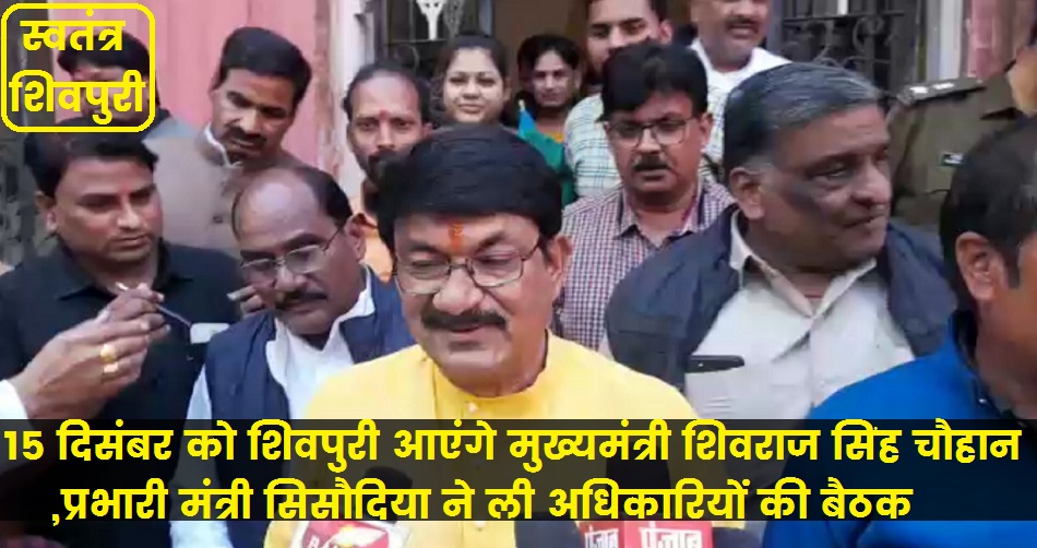 15 दिसंबर को शिवपुरी आएंगे मुख्यमंत्री शिवराज सिंह चौहान ,प्रभारी मंत्री सिसौदिया ने ली अधिकारियों की बैठक