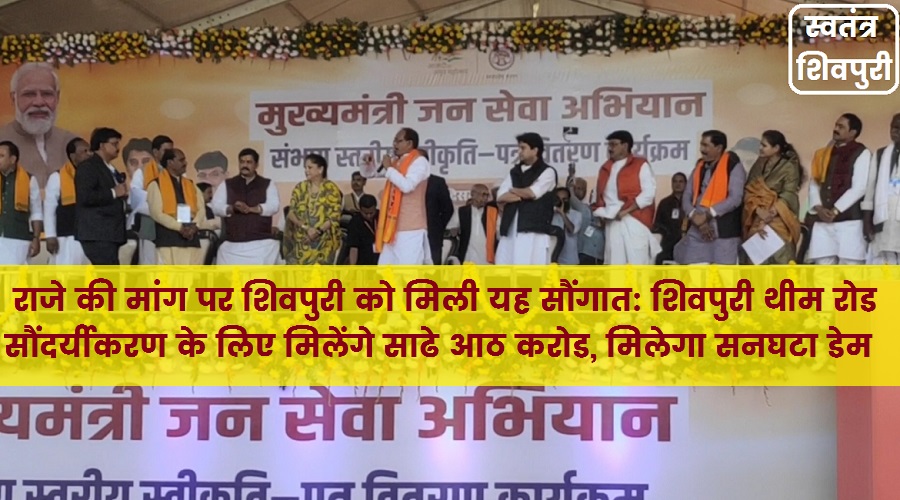 राजे की मांग पर शिवपुरी को मिली यह सौंगात: शिवपुरी थीम रोड सौंदर्यीकरण के लिए मिलेंगे साढे आठ करोड, मिलेगा सनघटा डेम
