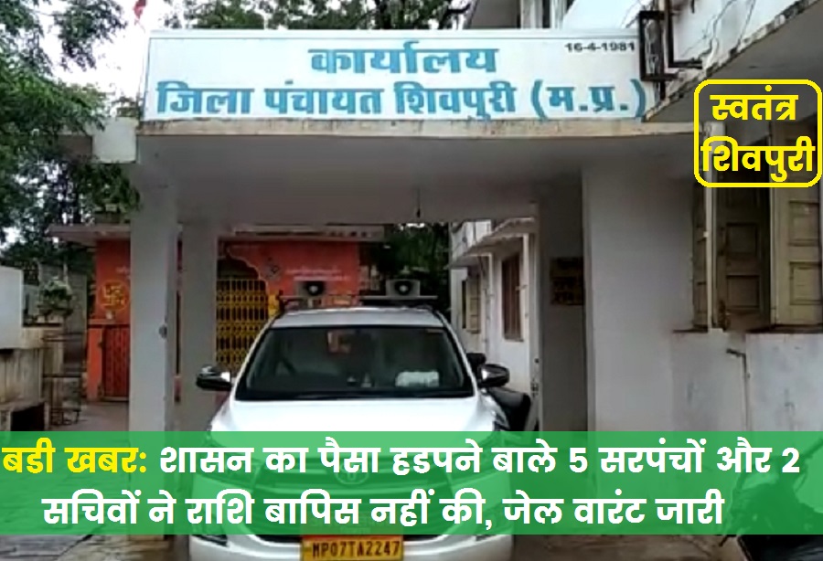 बडी खबर: शासन का पैसा हडपने बाले 5 सरपंचों और 2 सचिवों ने राशि बापिस नहीं की, जेल वारंट जारी