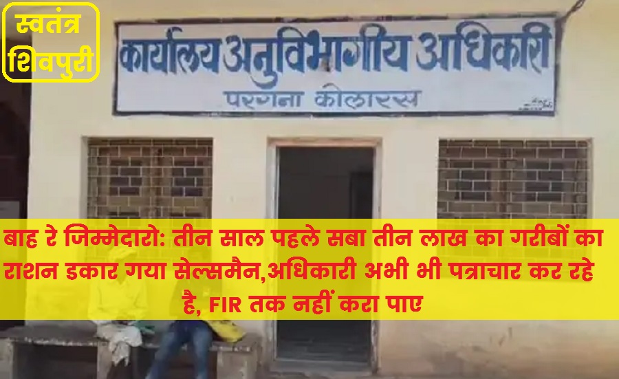 बाह रे जिम्मेदारो: तीन साल पहले सबा तीन लाख का गरीबों का राशन डकार गया सेल्समैन,अधिकारी अभी भी पत्राचार कर रहे है,FIR तक नहीं करा पाए