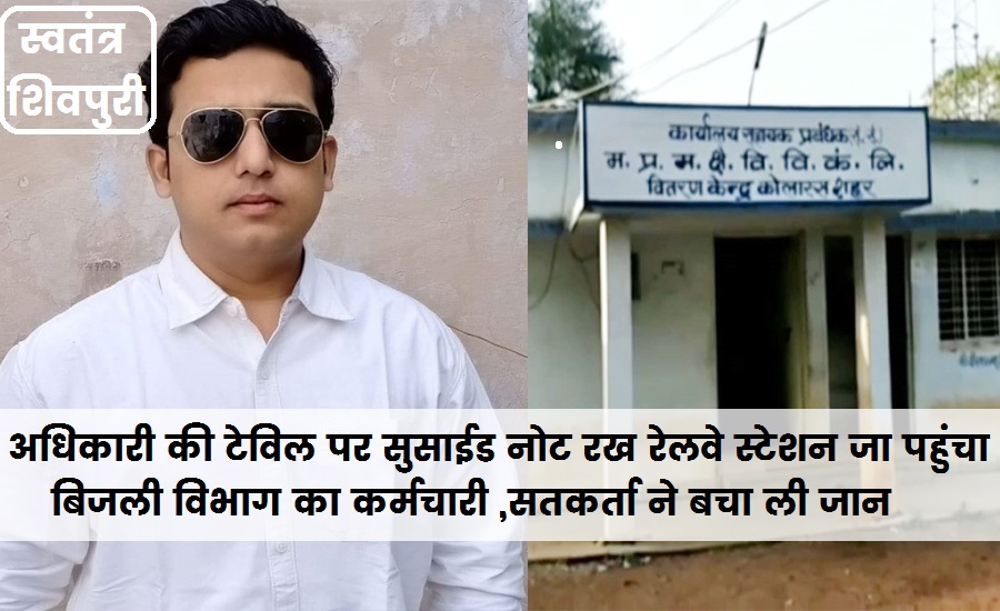 कोलारस। खबर जिले के बिजली विभाग कार्यालय कोलारस से आ रही है। जहां बीते रोज एक आउट सोर्स कर्मचारी अपने अधिकारी की टेविल पर सुसाईड नोट रखकर चला गया। इस सुसाईड नोट को दूसरे कर्मचारी ने देख लिया और तत्काल सतकर्ता दिखाई। इस सर्तकता के चलते युवक को विभाग के कर्मचारी और परिजनों ने बचा लिया।