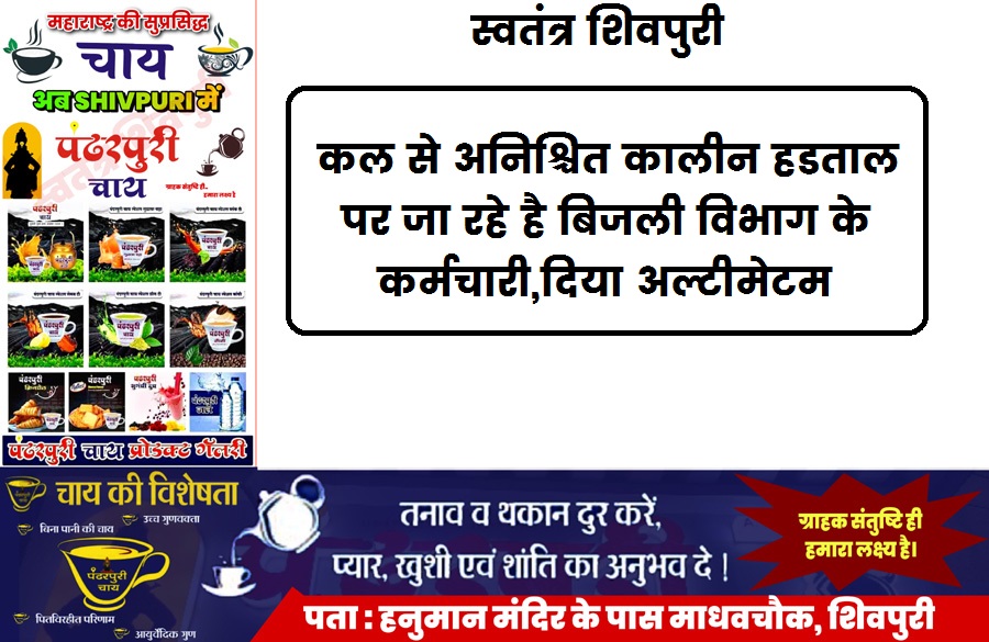 शिवपुरी। अपनी मांगों को लेकर पूरे मध्यप्रदेश में बिजली कंपनी के कर्मचारी अब कार्य बहिष्कार करने की तैयारी में है। इसे लेकर आज कंपनी के पदाधिकारीयों ने एसपी को सूचना देते हुए अपनी मांगों को पूरी कराने की मांग की। अपनी मांग पूरी नहीं होने पर उन्होंने कल से हडताल पर जाने की बात कही है।