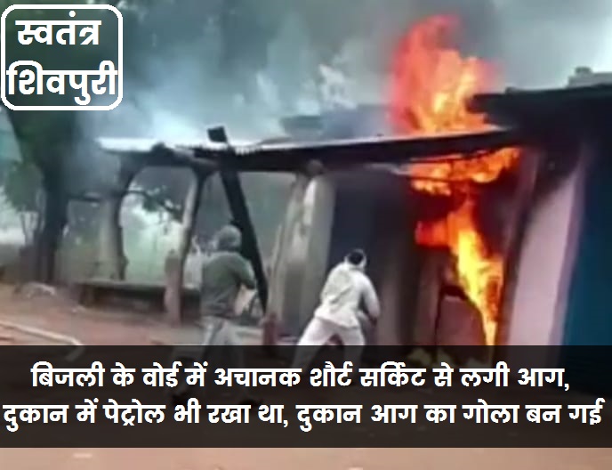 बिजली के वोर्ड में अचानक शौर्ट सर्किट से लगी आग, दुकान में पेट्रोल भी रखा था,दुकान आग का गोला बन गई