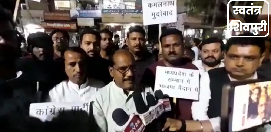 शिवपुरी । मध्य प्रदेश के पूर्व मुख्यमंत्री व प्रदेश कांग्रेस के अध्यक्ष कमलनाथ ने मध्य प्रदेश को मदिरा प्रदेश कहकर करोड़ों करोड़ मध्य प्रदेश निवासियों का अपमान किया है। आज भाजपा ने माधव चौक चौराहे पर कमलनाथ के बयान की निंदा की। जिलाध्यक्ष राजू बाथम ने कहा कि कांग्रेस की मानसिकता और संस्कार को उनके प्रदेश अध्यक्ष और पूर्व मुख्यमंत्री कमलनाथ के बयान से स्पष्ट होती है।